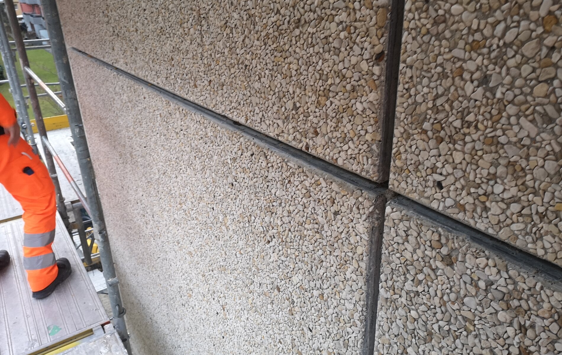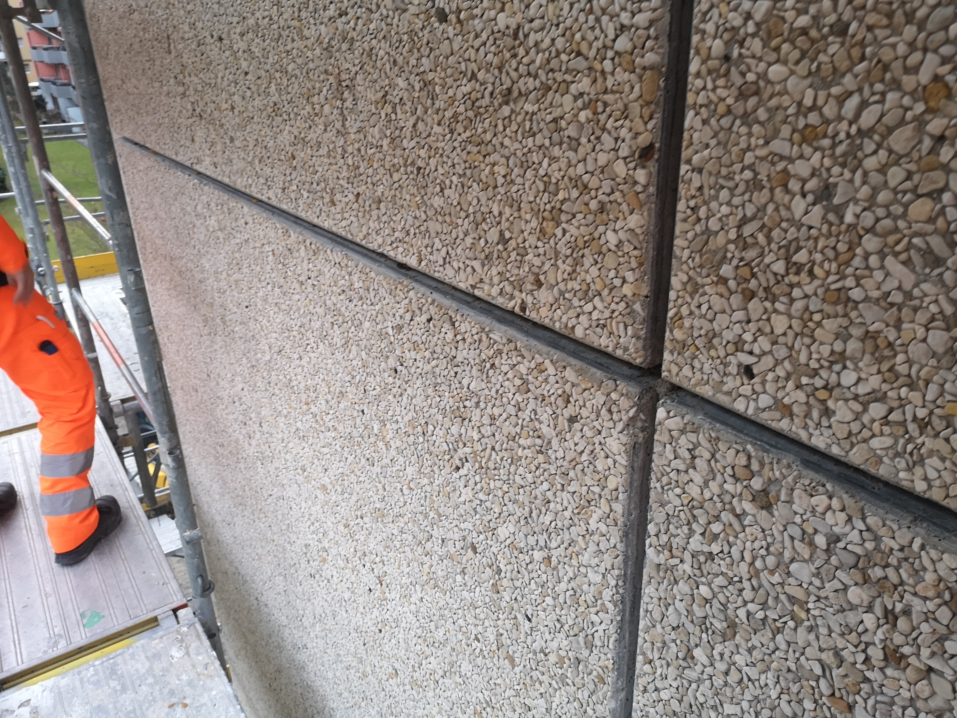 Weiterhin mussten an der Aussenfassade der Liegenschaft insb. PCB-haltige Fugendichtungsmassen saniert werden. Die Sanierung fand ausserhalb von Unterdruckzonen statt, jedoch mit erhöhten Anforderungen an den Arbeitnehmerschutz (Schutzanzüge, FFP3-Maske, Handschuhe).
