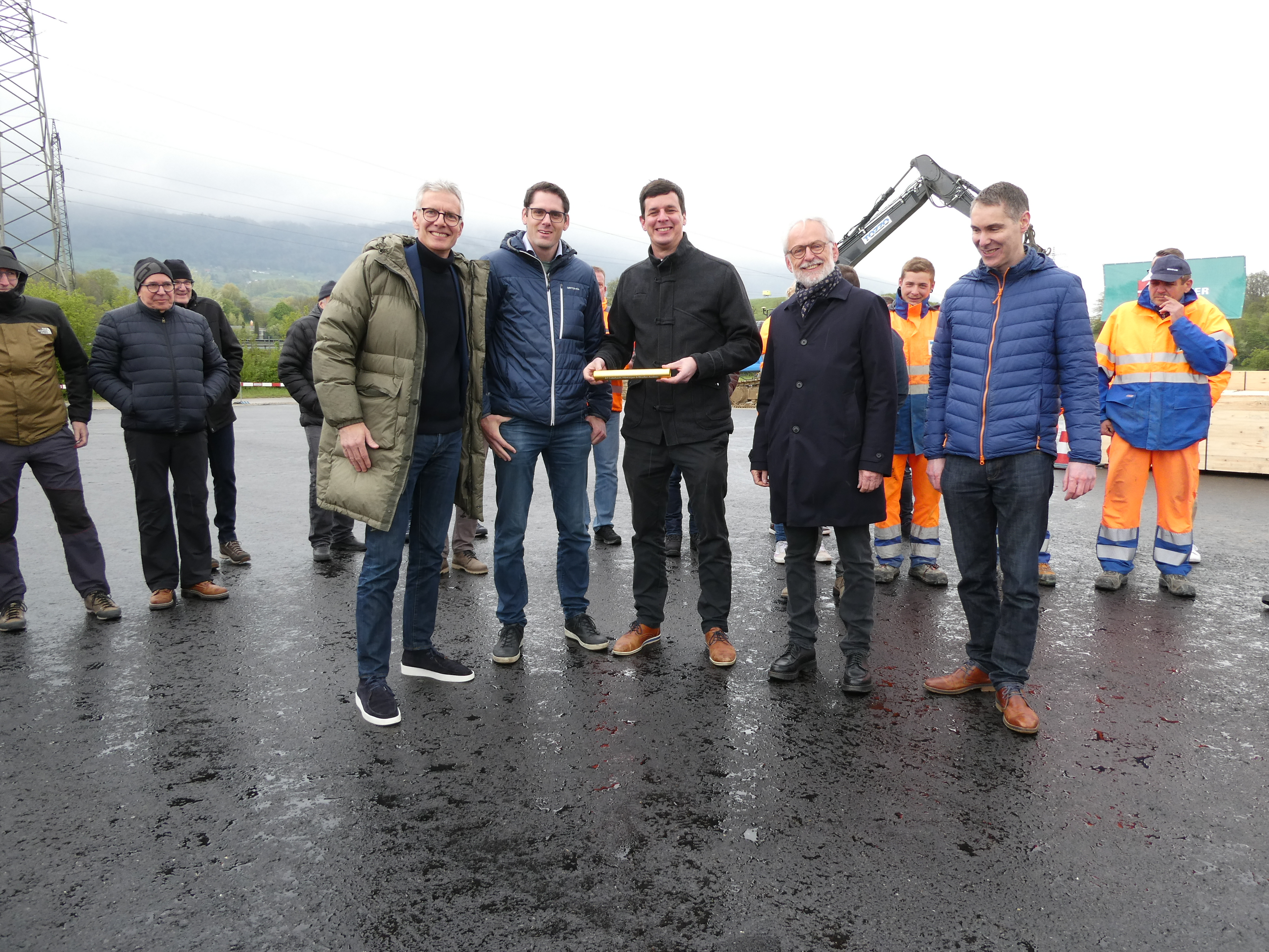 Nach langer Planungszeit war es am Freitag, 19.04.2024 endlich so weit. Die Realisierung des Grossprojektes A1 6-Streifen-Ausbau zwischen Luterbach und Härkingen wurde mit dem Spatenstich der Vorarbeiten auf dem Installationsplatz in Wangen a.A. offiziell gestartet.