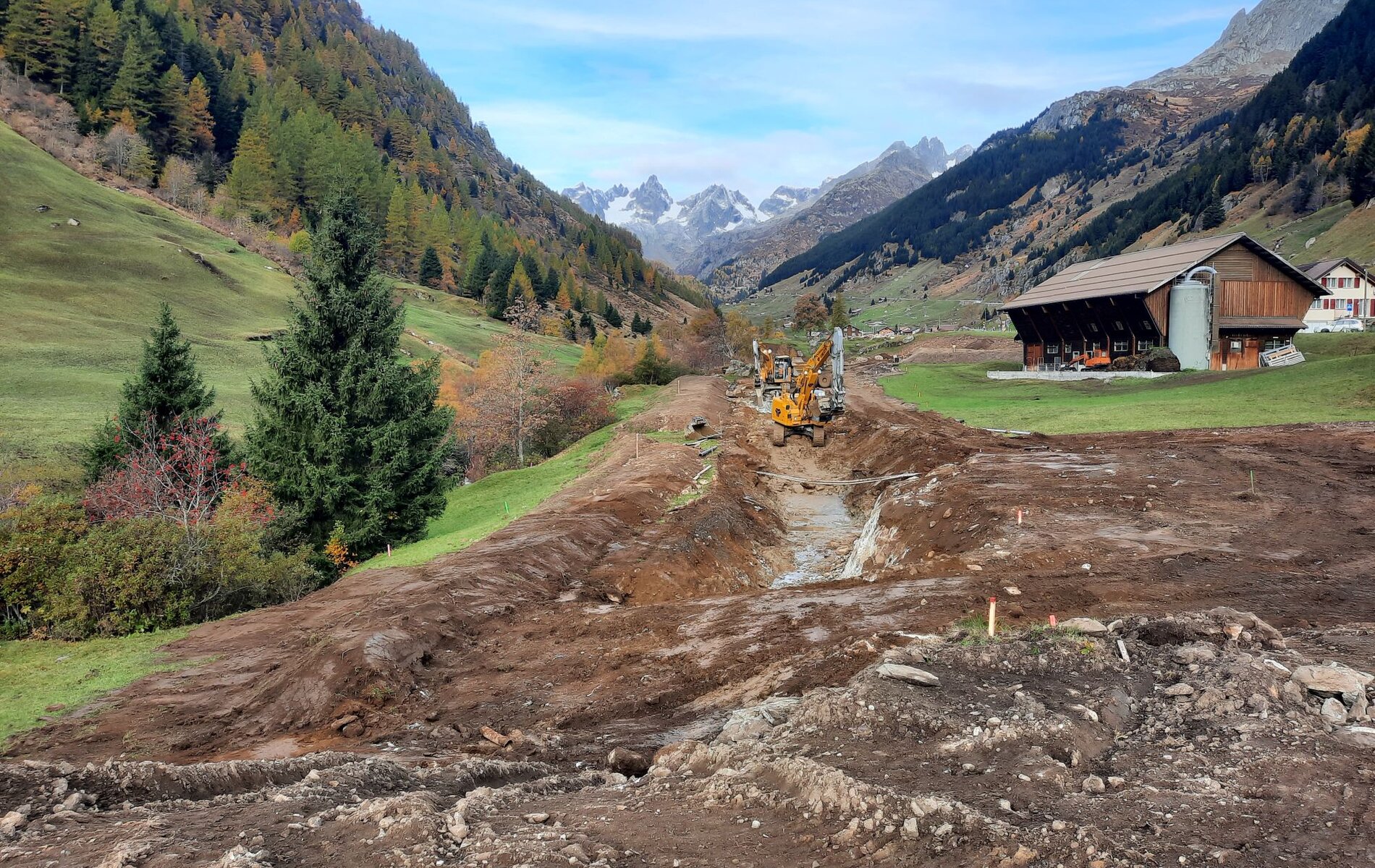 Die B+S AG begleitet das Projekt seit den ersten Planungen im Jahr 2008 als Fachplanerin Umwelt. Mit dem Baustart im Oktober 2025 übernimmt sie nun die Umweltbaubegleitung – inklusive bodenkundlicher Begleitung – und sorgt während der gesamten Bauphase für den Schutz der Natur- und Kulturgüter im Meiental. Dazu gehören insbesondere der Gewässerschutz der Meienreuss und ihrer Zuflüsse, der Erhalt von Wald-, Wiesen- und Weideflächen, der Schutz des historischen Verkehrswegs, Bodenschutz, Materialbewirtschaftung (inkl. belasteter Standort) und Geländegestaltung.