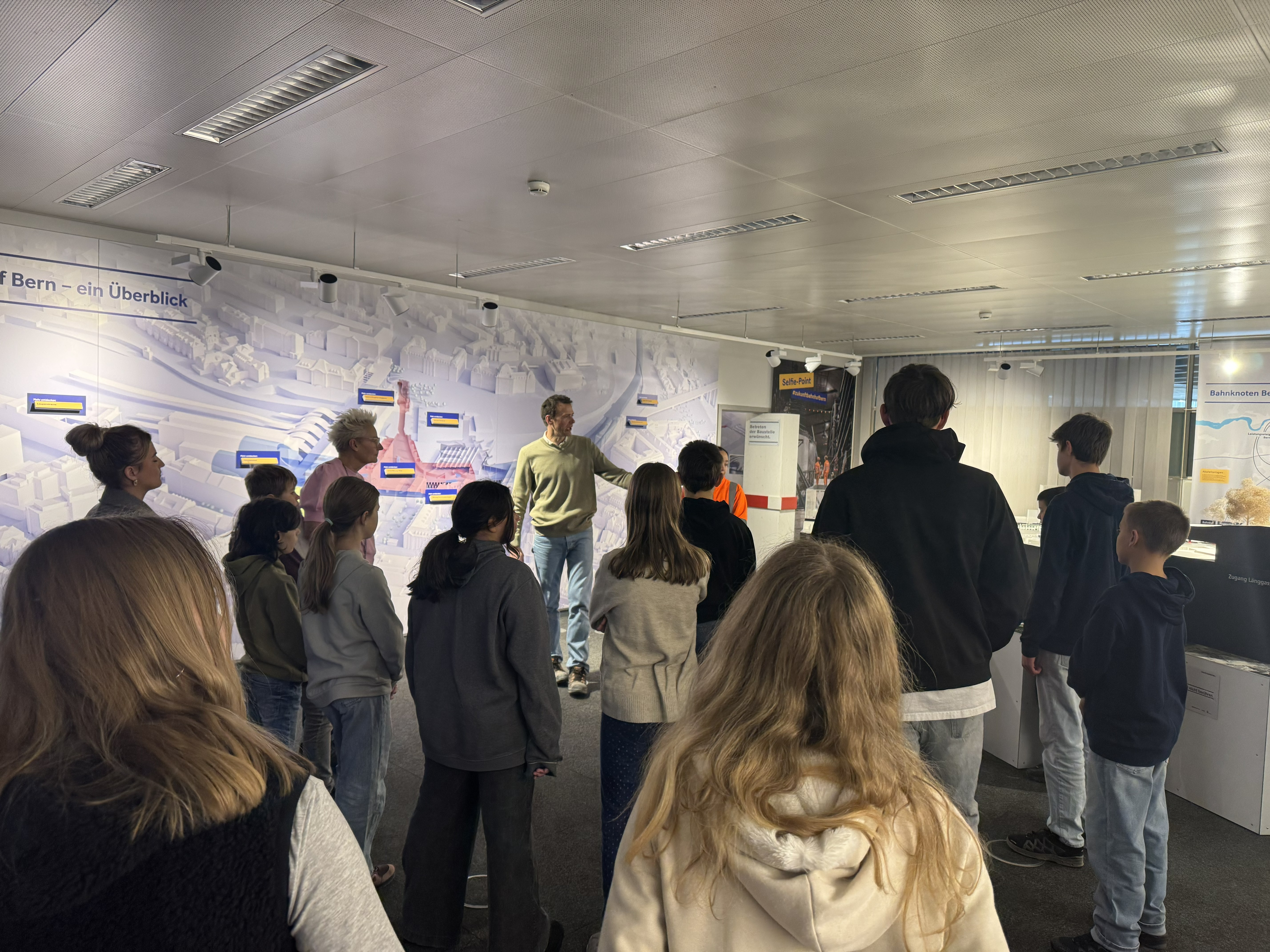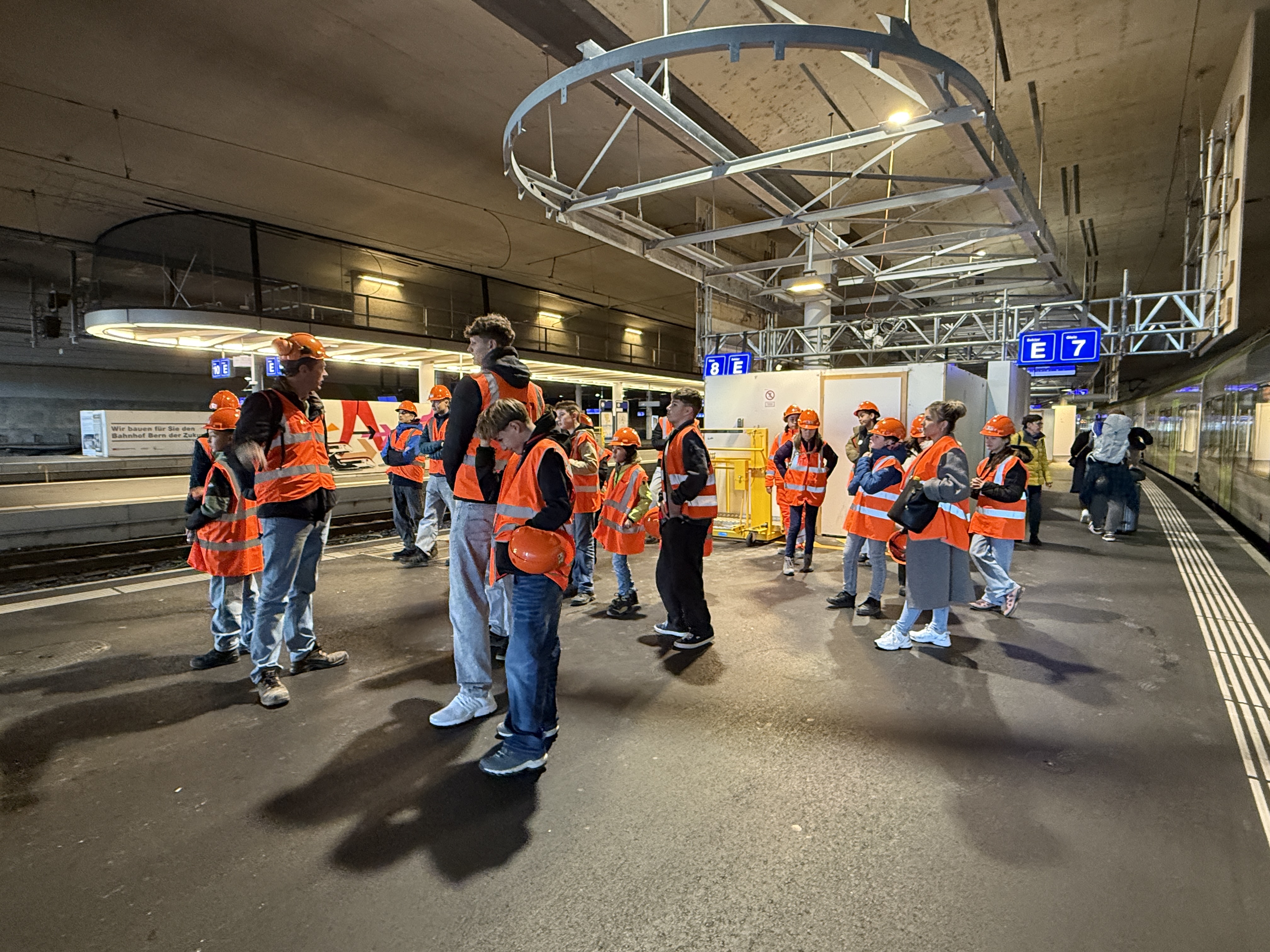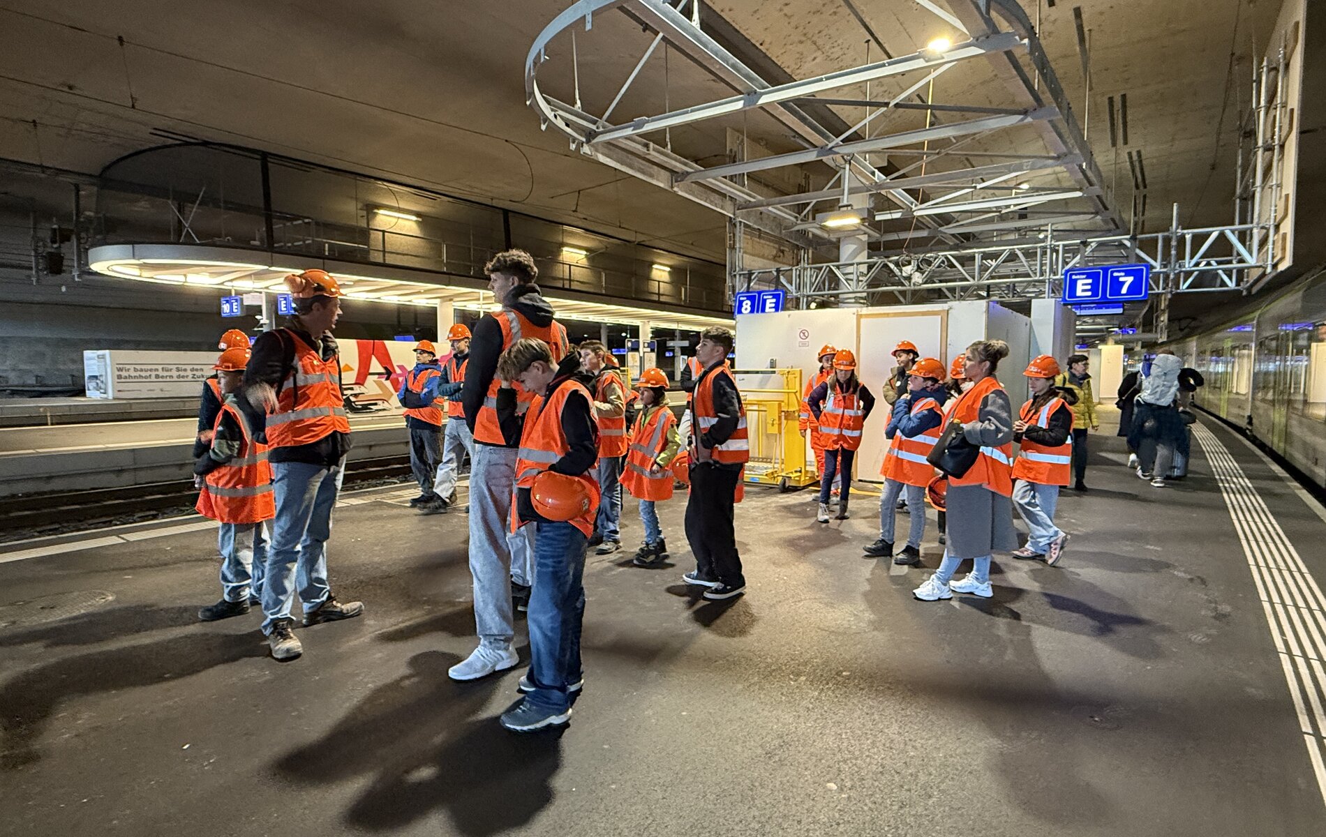 Der Startschuss fiel um 08.00 Uhr an unserem Standort in Bern: Ein Kurzfilm über unsere Lernenden bot erste Einblicke in den Berufsalltag, bevor ein Rundgang durchs Unternehmen und der Besuch der Grossbaustelle Ausbau Publikumsanlagen Bahnhof Bern folgten. Aus nächster Nähe mitzuerleben, wie ein so komplexes Projekt entsteht, sorgte für viele strahlende Gesichter.