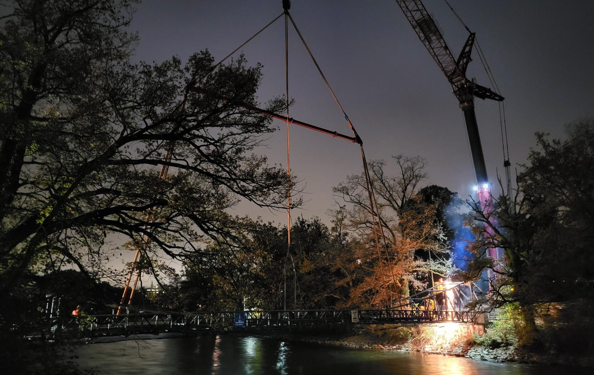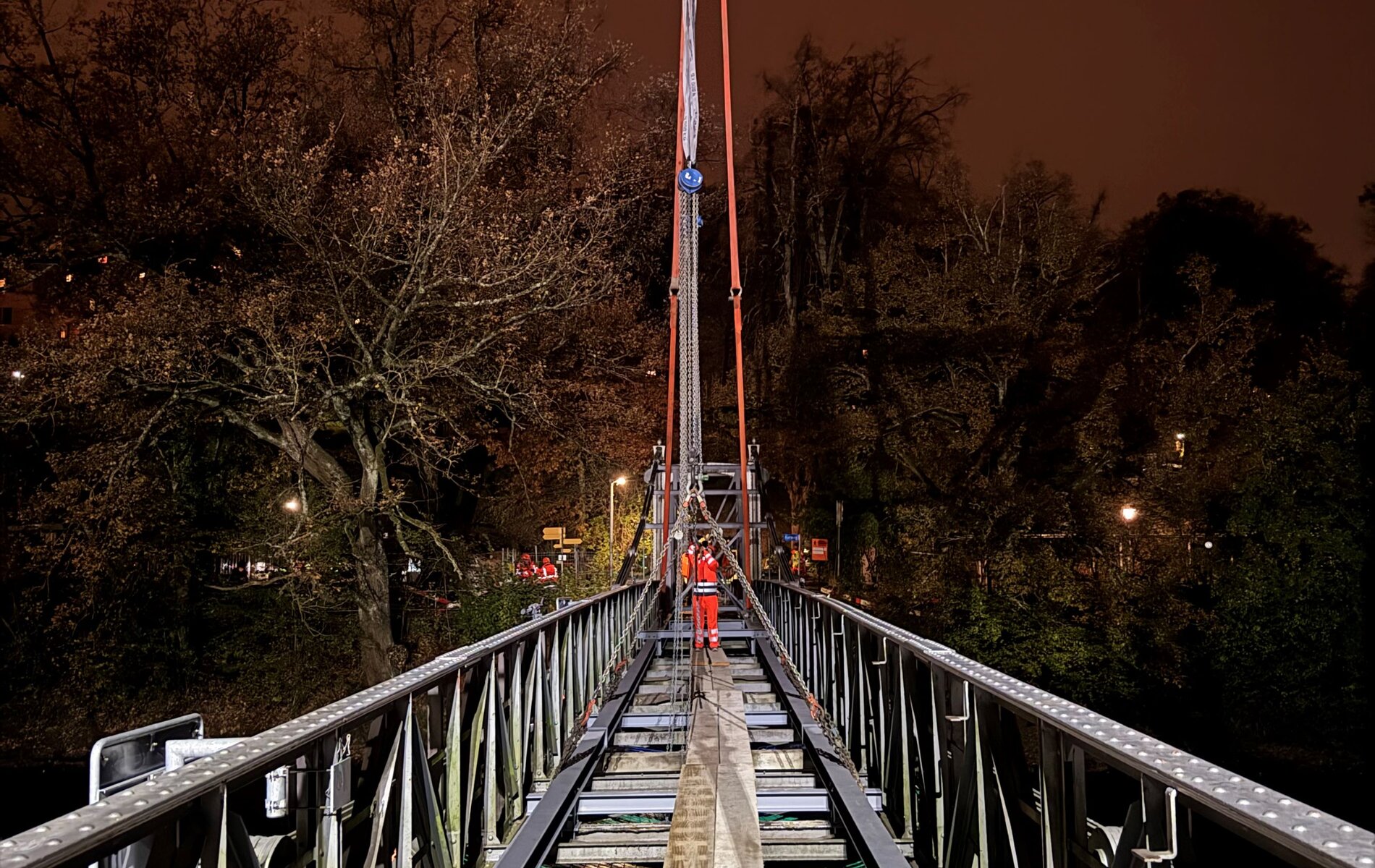 Der Wiedereinbau des sanierten Schönaustegs und der Abbau des Provisoriums sind für den Frühling 2025 geplant.