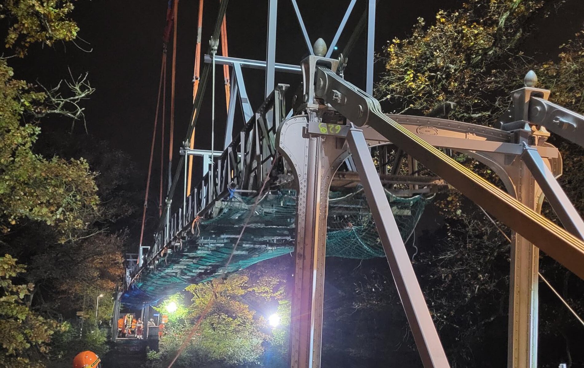In der Nacht vom 31. Oktober auf den 1. November wurde der Schönausteg erfolgreich herausgehoben und auf dem Parkplatz Dählhölzli abgestellt. In einem weiteren Schritt wird er in drei Teile zerlegt und abtransportiert.