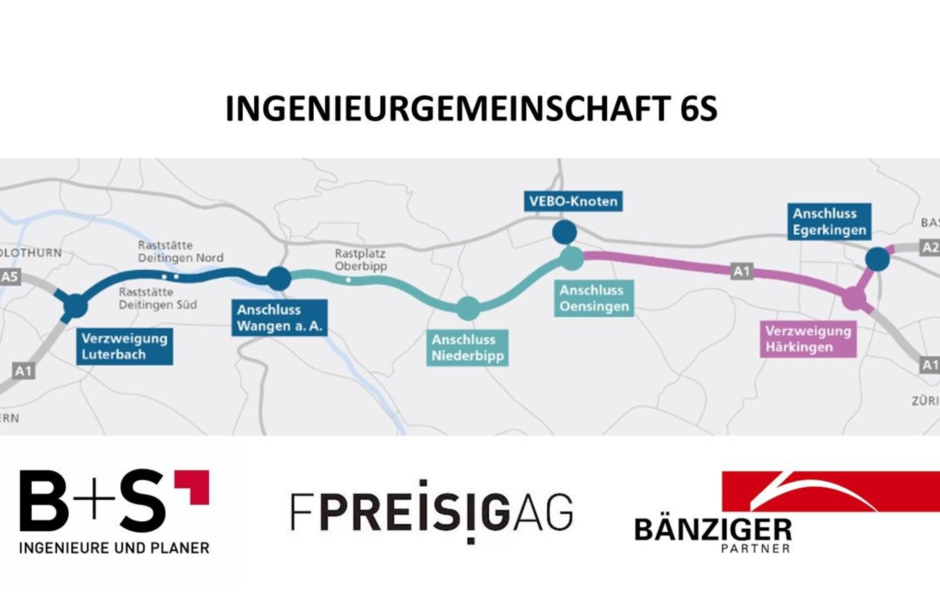 Als Ingenieurgemeinschaft 6S haben wir ein grosses Bauleitungsteam über die gesamte Bauzeit von rund 8 Jahren vor Ort und stellen die Gesamtkoordination und die Chefbauleitung sicher. Wesentliche Projektelemente sind neben dem eigentlichen 6-Streifen-Ausbau über 22 Kilometer, die Instandsetzung von rund 34 Kunstbauten, der Ersatz von 13 und die Verbreiterung von 9 Kunstbauten. Weiter werden eine neue 3. Aarebrücke und eine Wildtierunterführung bei Wangen a. A., eine Rampenbrücke in der Verzweigung Härkingen und eine Wildtierüberführung in Oberbuchsiten erstellt.