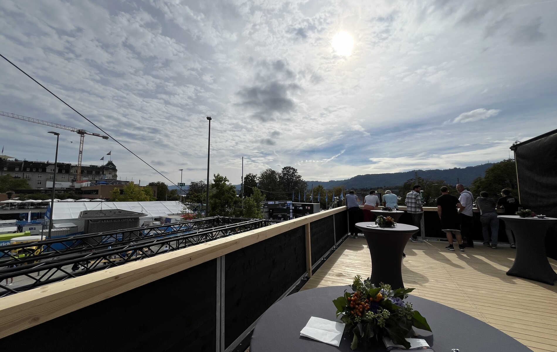 Unsere Gäste genossen nicht nur anregende Gespräche und kulinarische Köstlichkeiten, sondern auch das Mixed Relay Rennen mit direktem Blick auf die Ziellinie von der Terrasse des Domes aus.