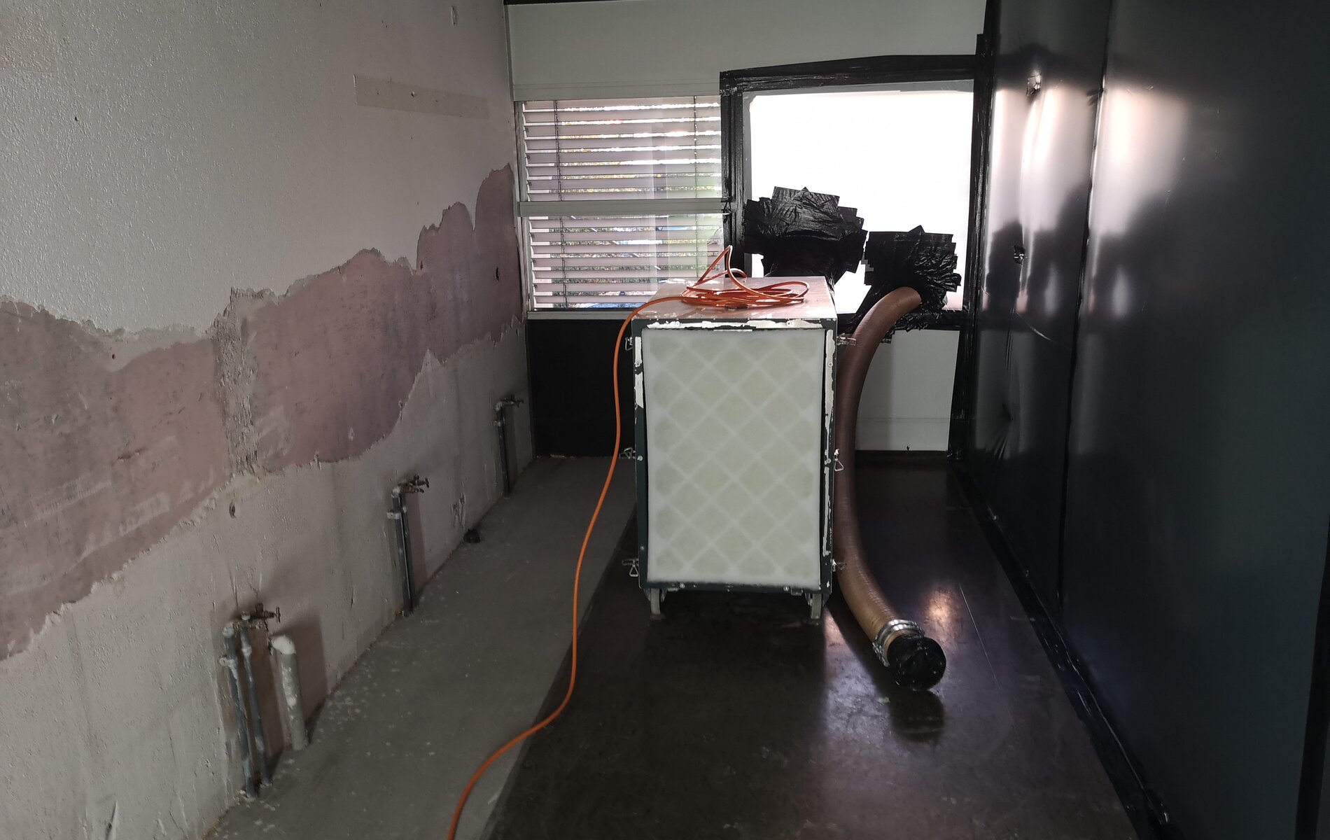 Weiterhin mussten an der Aussenfassade der Liegenschaft insb. PCB-haltige Fugendichtungsmassen saniert werden. Die Sanierung fand ausserhalb von Unterdruckzonen statt, jedoch mit erhöhten Anforderungen an den Arbeitnehmerschutz (Schutzanzüge, FFP3-Maske, Handschuhe).