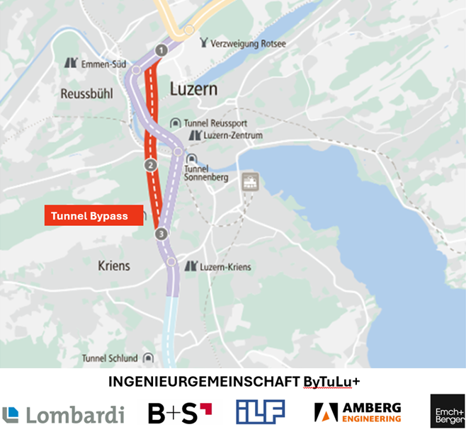 Als Teil der IG ByTuLu+ wirken wir künftig an der Planung der zwei neuen, jeweils ca. 3.5 km langen Tunnelröhren, der Kunstbauten und des Trasses mit. Die IG ByTuLu+ vereint die Expertise von B+S AG, Lombardi AG, ILF Consulting Engineers in Switzerland, Emch+Berger Gruppe und Amberg Engineering AG, um dieses anspruchsvolle Grossprojekt in sensiblem, städtischem Umfeld optimal umzusetzen.
