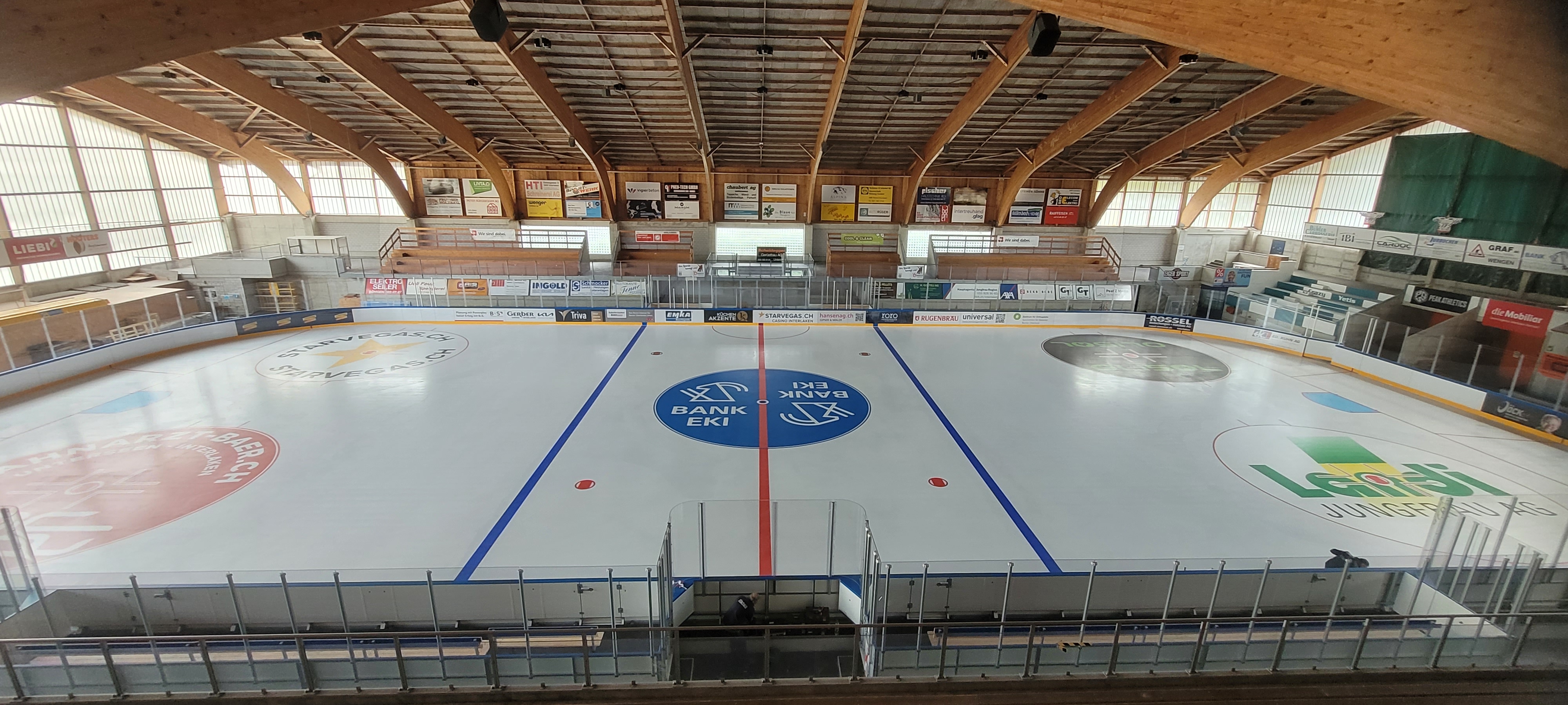 Eissportzentrum Jungfrau in Matten b. Interlaken: Inbetriebnahme Piste und Bandensystem